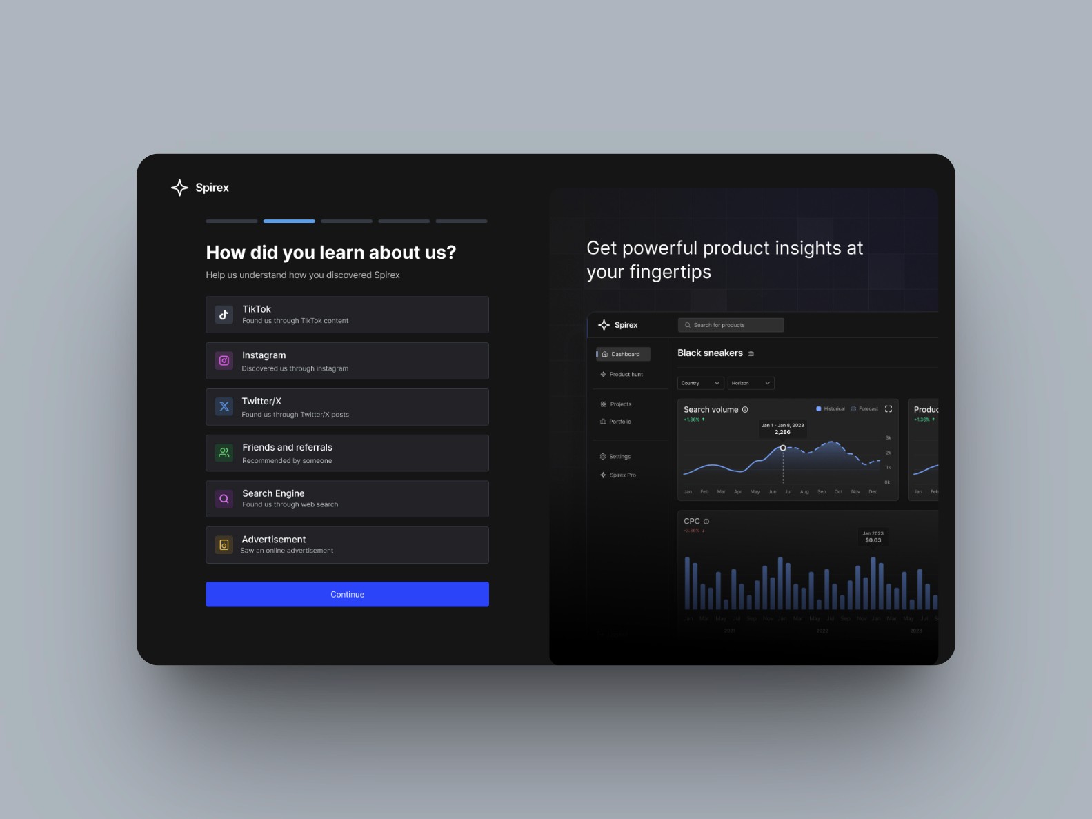 TL;DR: The goal was to simplify how e-commerce businesses forecast product demand by redesigning Spirex into a frictionless, AI-powered tool that predicts product trends, helping them optimize inventory, ads, and sales without needing data skills.
