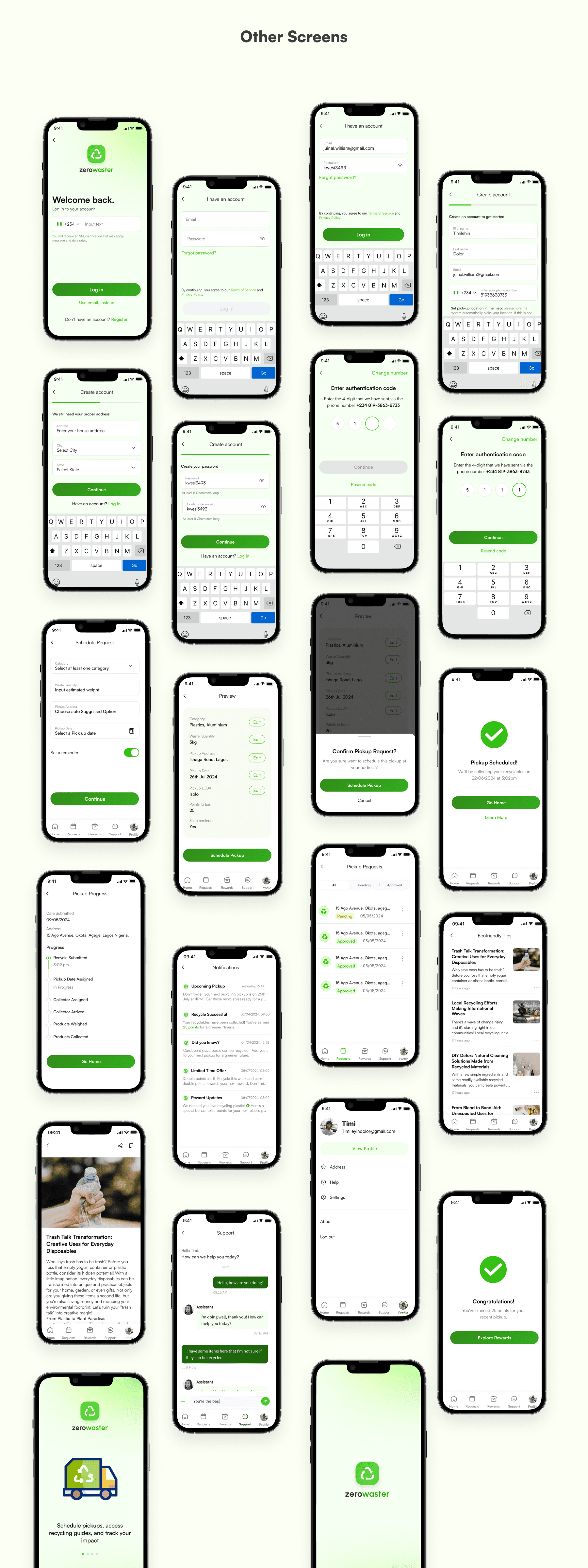 Zerowaster is a mobile app designed to encourage eco-friendly practices through seamless waste management and recycling efforts. The app aims to empower users to track their recycling progress, set up waste pickups, and learn more about sustainable living.